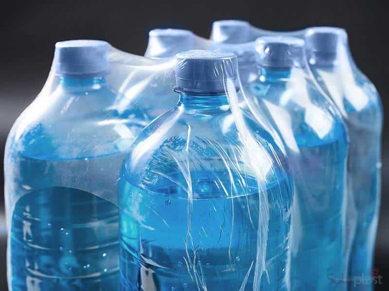 Le film rétractable de fardelage permet de regrouper des produits – packs de bouteilles d’eau, paquets de farine, etc.
