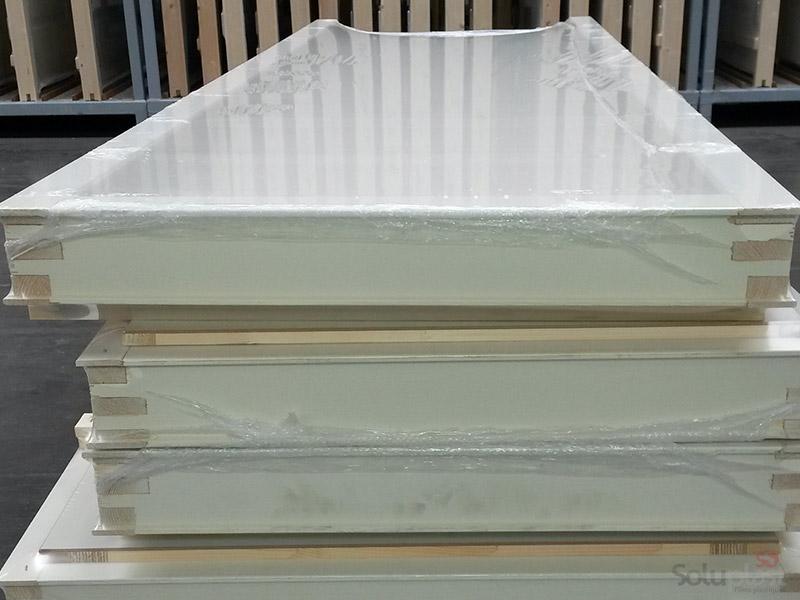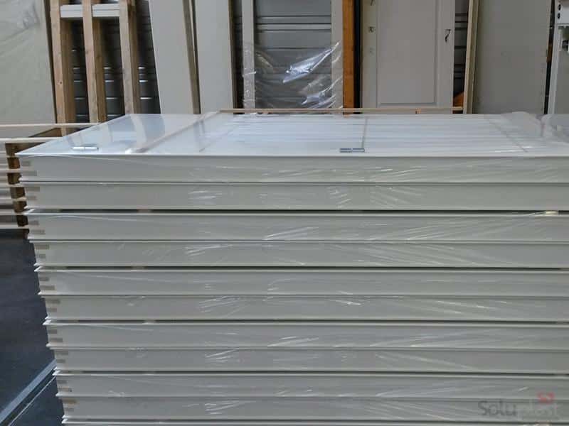 Le film rétractable de fardelage permet de protéger la menuiserie des rayures pendant le transport. Réputé pour son imperméabilité, il est souvent utilisé pour protéger toutes les menuiseries industrielles avant expédition chez le client.
